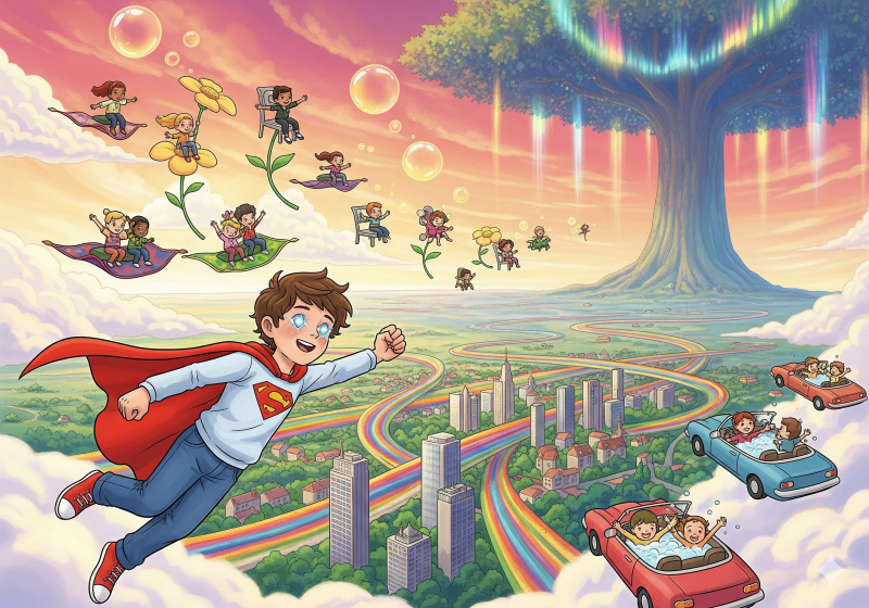 découvrez paul, 10 ans, qui se réveille avec des yeux bleus magiques dans un monde transformé ! fini les accidents de voiture : l'herbe arc-en-ciel ralentit automatiquement les véhicules. les malades guérissent instantanément, on peut voler comme les oiseaux et se métamorphoser à volonté ! les pièces de monnaie se divisent toutes seules pour rendre la monnaie, les chaises volent pour nous emmener où on veut, et les tatouages-papillons nous réveillent en nous chatouillant ! 'il sera une fois... demain' : un rêve positif de 114 pages où l'amour a transformé l'humanité. parfait pour s'endormir heureux et rêver d'un monde merveilleux ! à partir de 8 ans.